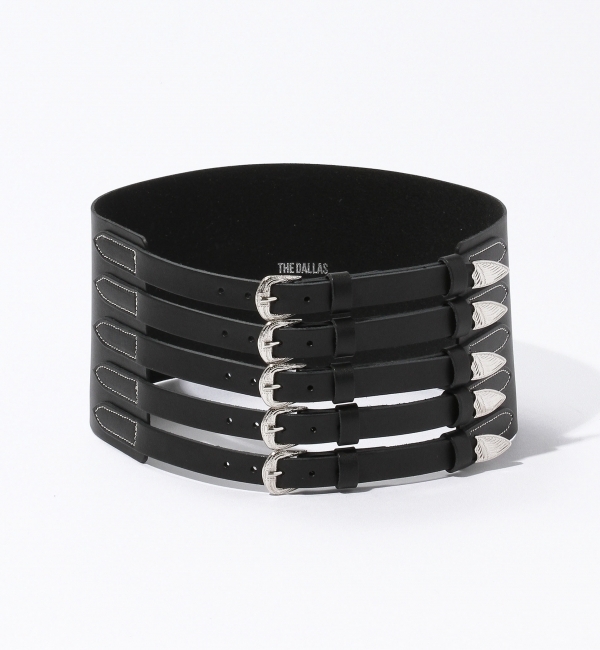 【送料無料】 5本の細ベルトが付いた、存在感のあるキドニーベルト。ボリュームブラウスなどの上からややハイウエストの位置でコルセット風に合わせるのがおすすめです。〈THE Dallas(ザ・ダラス)〉2016秋冬よりスタートした日本のウィメンズブランド。『セクシーでありながらカッコイイ、自立し凛とした女性の服』をテーマに、ウェアやレザーチョーカー、ベルトなどを展開しています。店舗にお問い合わせの際は、下記の品番をお申し付けください。品番:38057505009 トゥモローランド/TOMORROWLAND TOMORROWLAND GOODS|小物|ベルト